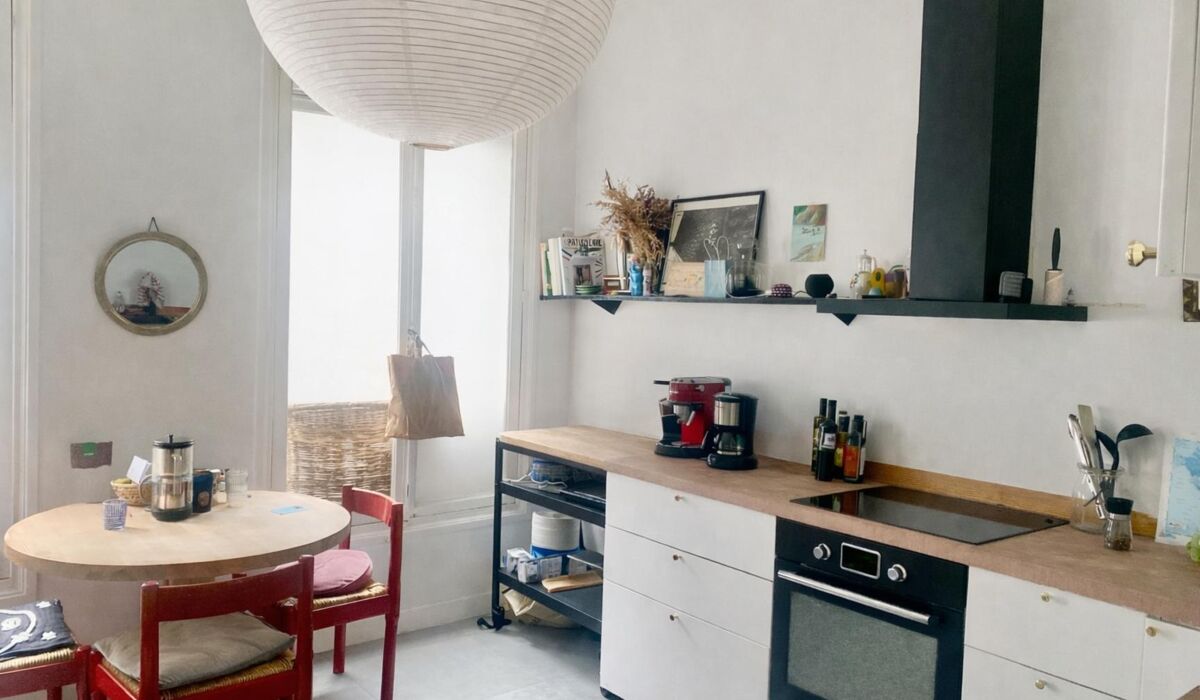 Le charme de l’ancien est au rendez-vous : parquet point de Hongrie, moulures, cheminée, belles hauteurs sous plafond.