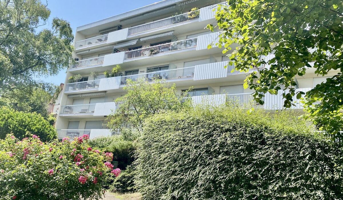 Dans une résidence des années 80 de bon standing, au 1er étage avec ascenseur, bel appartement de 75 m2 niché dans la verdure, traversant, au calme et très central, offrant une entrée distribuant un grand séjour d'environ 30m2 orienté Sud/est avec de larges baies ouvrant sur un balcon, 2 chambres de 10 et 11m2, une cuisine spacieuse aménageable, une salle de bains et des toilettes séparées, Une cave et une place de parking au sous-sol complètent l'ensemble avec accès direct par ascenseur. Excellent potentiel. Emplacement idéal. Tout à pied: A 5' de la gare, des commerces et des écoles. DPE: D