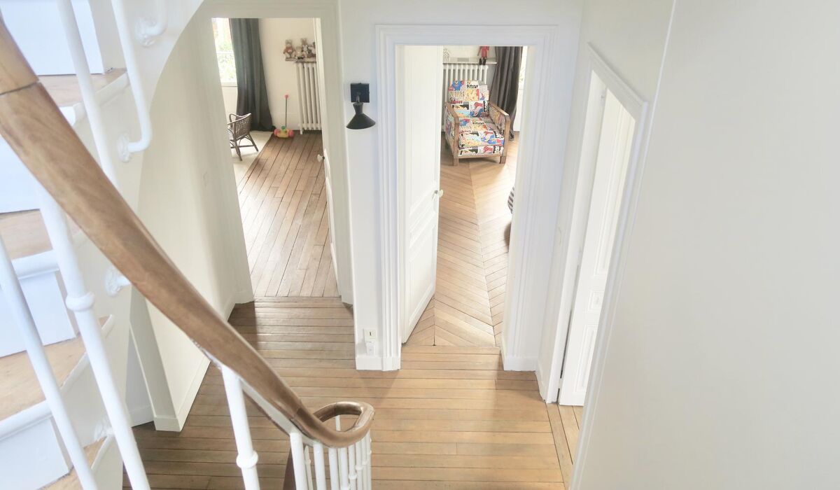 A moins de 10' de la gare de Garches, dans un quartier résidentiel et calme, belle maison ancienne sur une parcelle de 1151m2 vous proposant au RDC: une grande entrée avec deux vastes pièces de réception - parquet et cheminées - ont une donnant de plain pied sur terrasse et jardin, une cuisine équipée avec espace dinatoire, un dressing et des toilettes séparées.